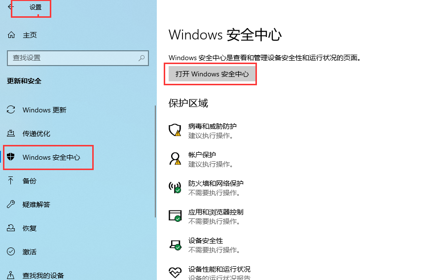 如果有的小伙伴已经被电脑给拦截的打开设置-Windows安全中心-打开Windows安全中心