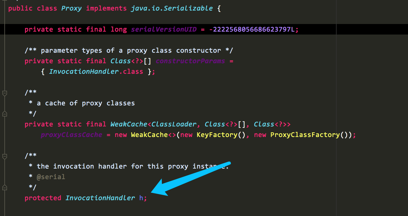 我们发现所有的方法都有h.invoke() 我们看看这个h是什么?