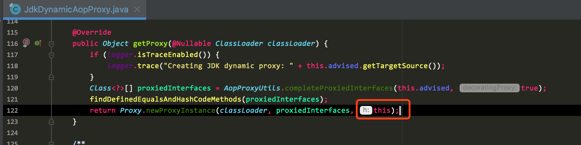 父类中还真有一个h对象,h的类型是InvocationHandler。我们所谓的增强操作就是在这个InvocationHandler接口的实现类内部实现的。我们找下spring aop中的代理对象是什么时候指定了自己的InvocationHandler。(我们把增加日志,增加事务控制叫做增强,不叫通知)
