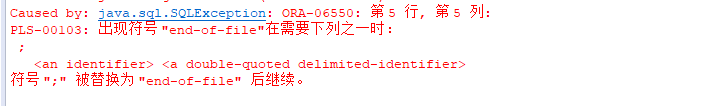 PLS-00103: 出现符号 "end-of-file"在需要下列之一时: ; <an identifier> <a double-quoted delimited-identifier>符号 ";" 被替换为 "end-of-file" 后继续。