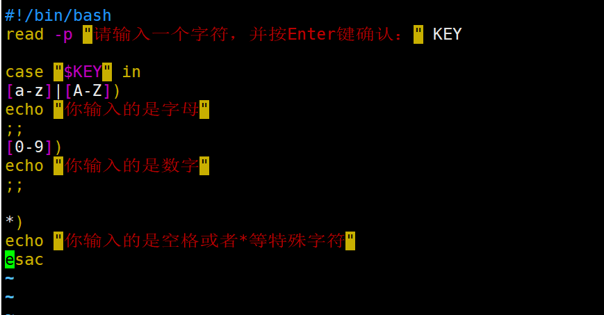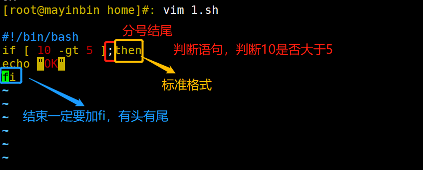 判断条件:test一种形式,[] 中间只能使用 = 和 != 比较字符串,如果使用<、>需要进行转义\.