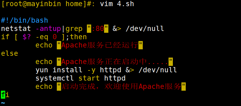 若果我们想更友好的显示结果信息,我们可以在脚本中重定向输出,把不想显示的输出到/dev/null中