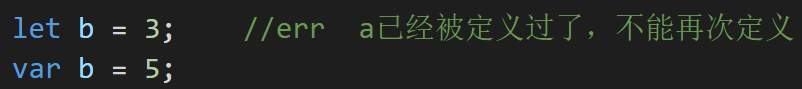2,let不能定义已经定义过的变量(无论之前是用var定义的还是let或者const定义的)