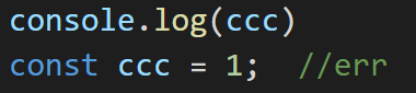 1,const定义的变量不会预解析,必须先声明再使用,否则会报错