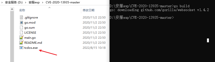 需要使用go语言进行编译,编译之后会生成一个tcdos.exe