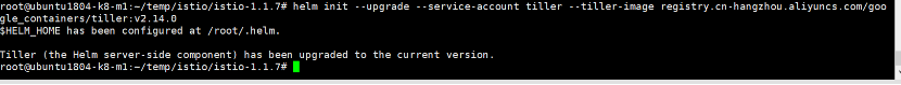 helm init --upgrade --service-account tiller --tiller-image registry.cn-hangzhou.aliyuncs.com/google_containers/tiller:v2.14.0