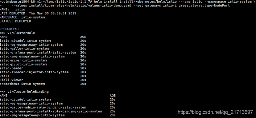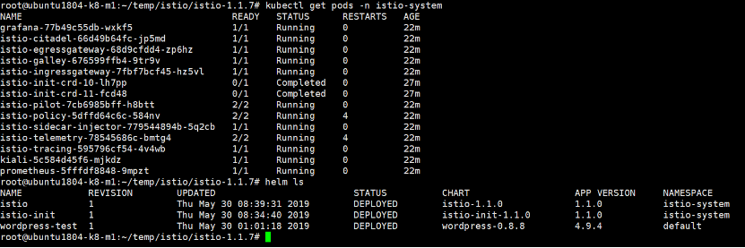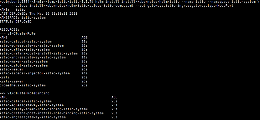 helm install install/kubernetes/helm/istio --name istio --namespace istio-system \