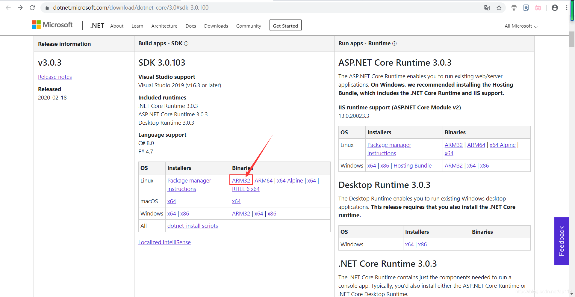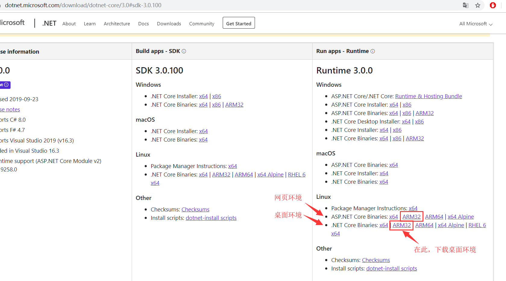 想要省事的同学请下载中间的SDK Linux.net Core ARM32