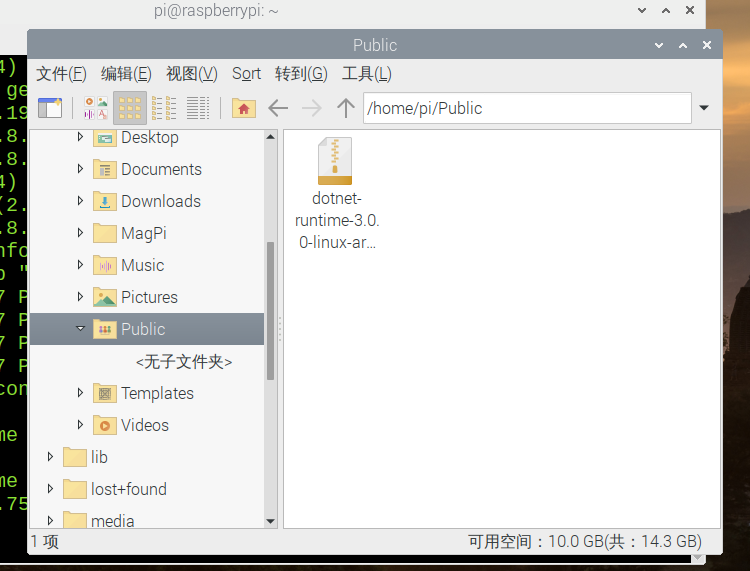 这里下载得到dotnet-runtime-3.0.0-linux-arm.tar.gz,大小约为30.02MB,通过Samba扔进树莓派。