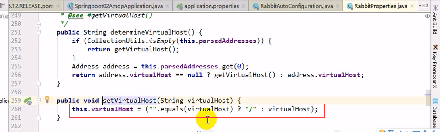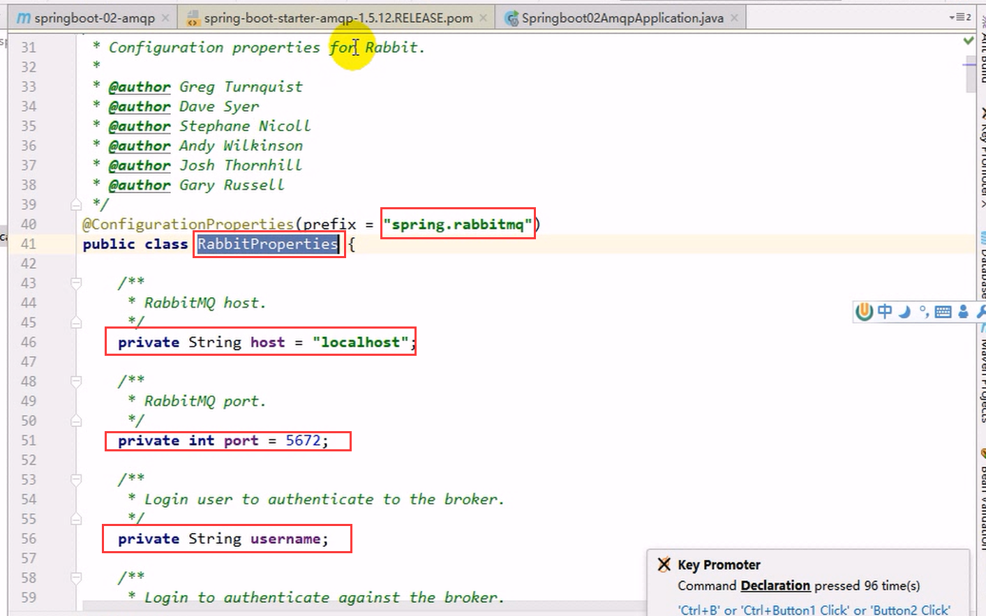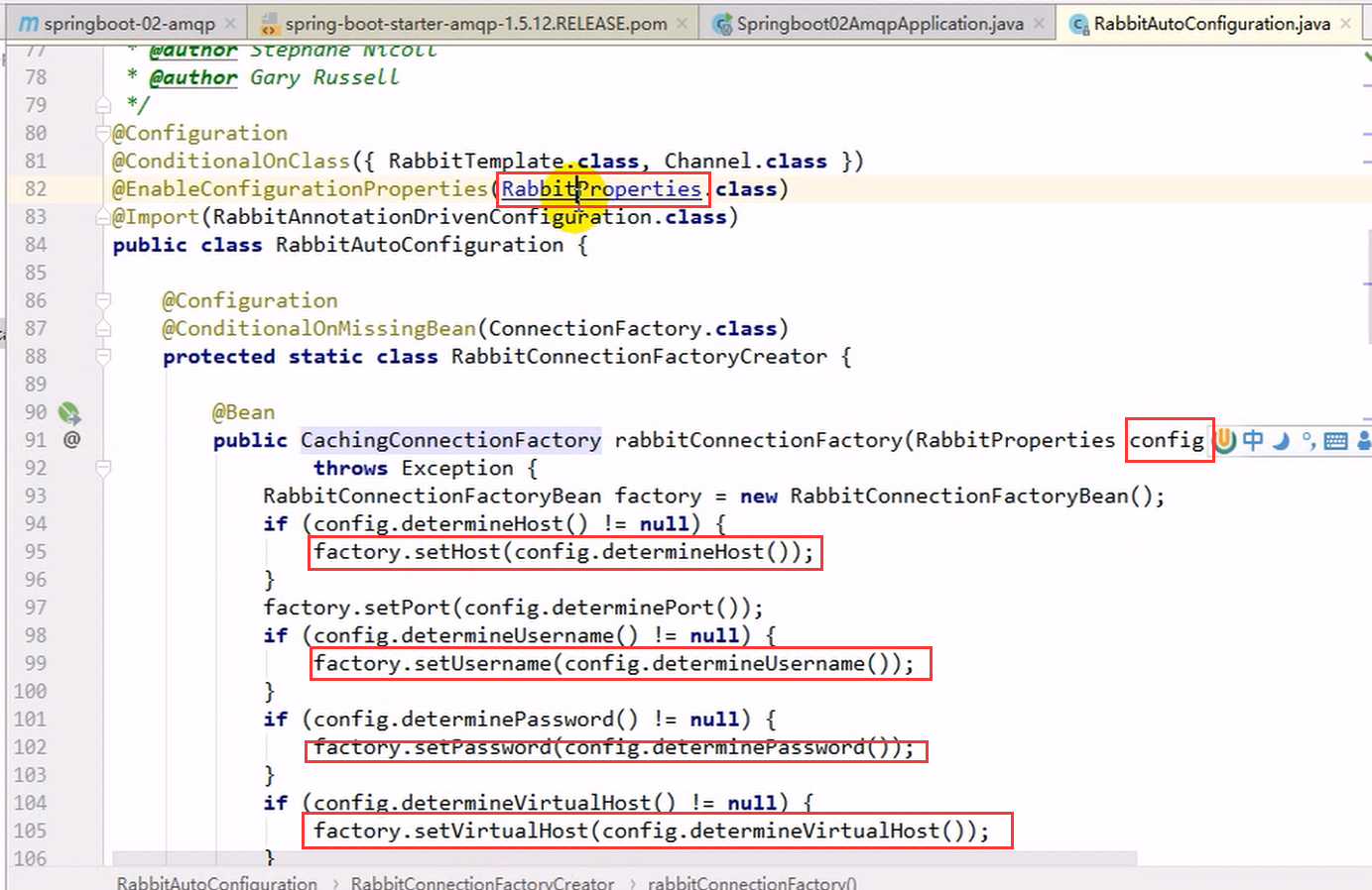 我们可以看到rabbitMQ的底层配置属性的核心在于RabbitProperties配置类