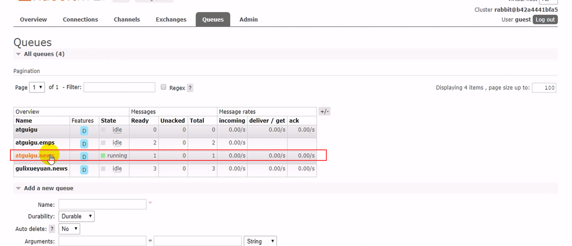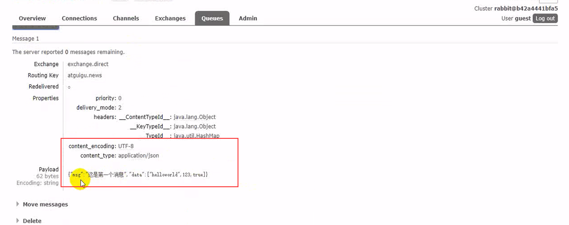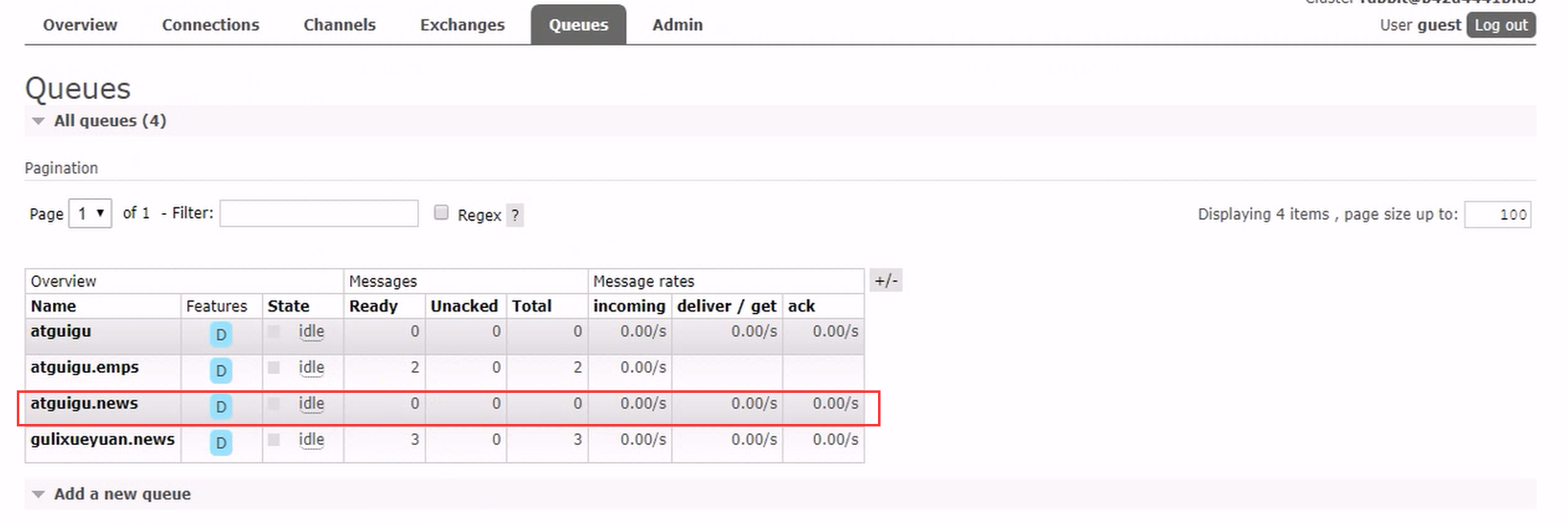 然后我们就可以看到rabbitMQ对应的消息队列里面就没有了