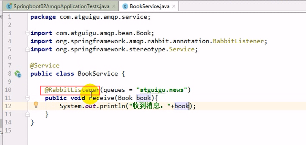 监听指定的消息队列中的消息,一旦有消息进来就会被调用执行