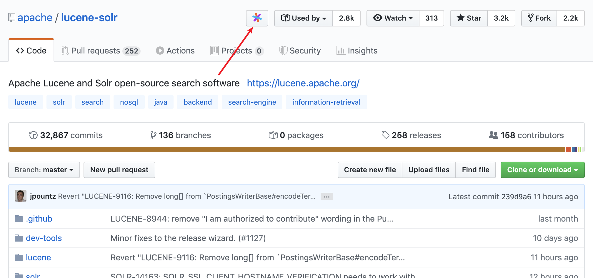 安装插件后,打开github下面的某个repo,就能看见下图的标记