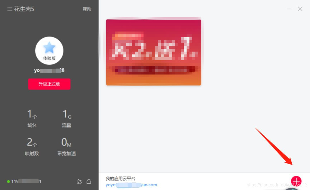 安装注册打开花生壳客户端,点击右下角“+”号添加内网映射;