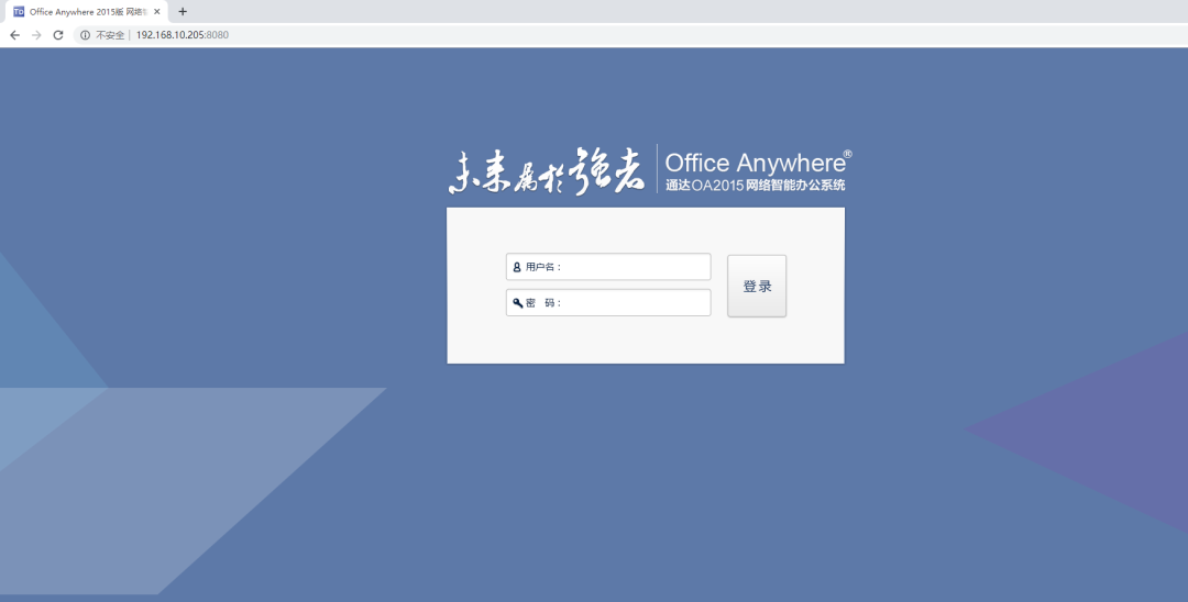 然后在局域网内测试访问是否成功:浏览器输入http://192.168.10.205:8080,能正常访问OA系统,证明局域网OA搭建成功;