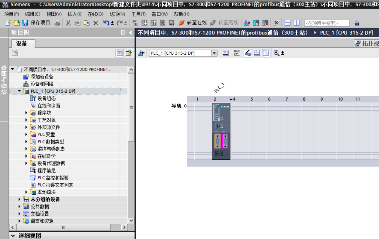 两个PLC在同一项目中,还是在两个不同的项目中配置是不同的,接下来将详细介绍在不同项目中的,S7-300 DP采用的是TIA V14编写的;S7-1200 PROFINET采用的是TIA V16编写的。
