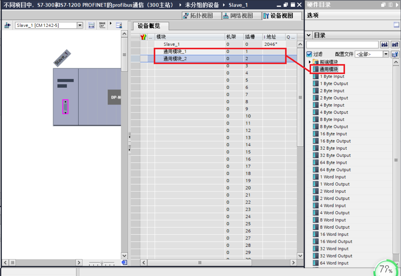 5)、在设备概览中,插入通用模块,形成“通用模块_1”和“通用模块_2”;