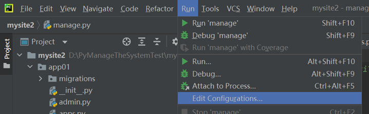 解决方法:顶部菜单栏中 run-->Edit Configurarions (如下图所示)