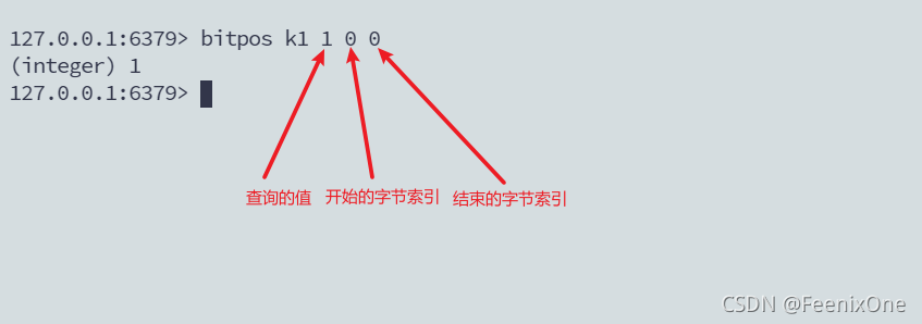 那如果我查第二个字节里面的偏移量呢?bitpos k1 1 1 1,此时返回的应该是多少?还是1吗?不是,是9。虽然查询的时候范围1 1指的是查询第二个字节里面1的位置,但是返回的时候却是按照整个二进制从左往右的位置,所以第2个字节中的1在整个二进制位中是第10个位置。
