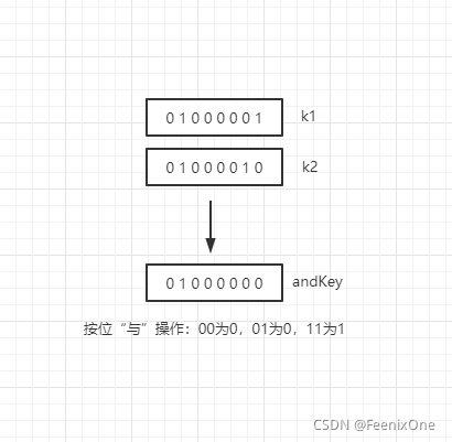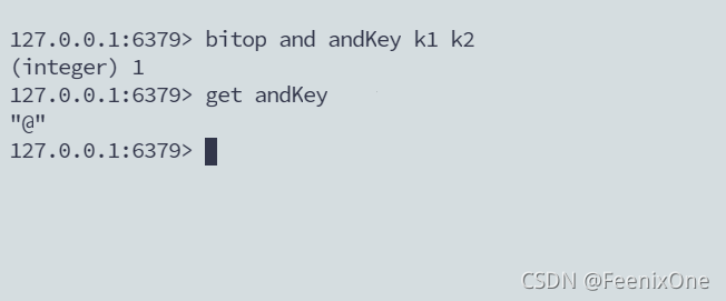先做“与”运算(有0则0,全1为1),看看是什么:bitop and andKey k1 k2,意思是将k1的值和k2的值进行按位与操作,结果存入andKey中,那么get andKey中的值是多少?是@。