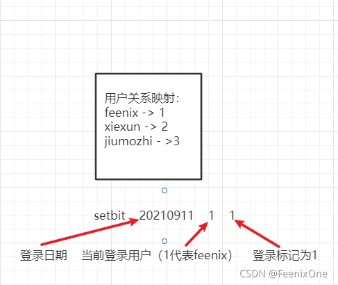 按照上图所示,feenix这个用户就在第1天,第3天,第360天登录。