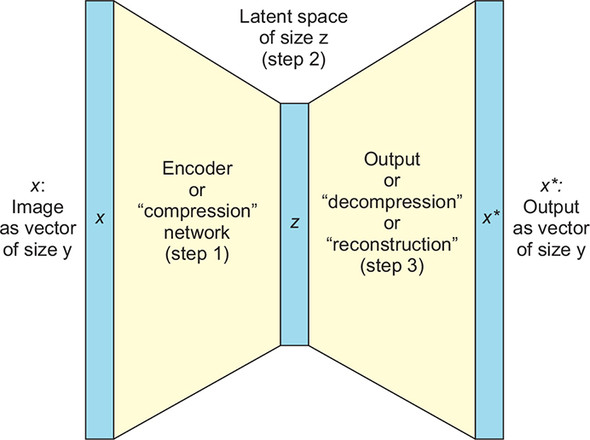 (2)潜在空间(z):在训练时,试图建立具有一定意义的潜在空间。潜在空间通常是有较小维度的表示,起着中间步骤的作用。在这种数据的表示中,自编码器试图“组织其思想”。