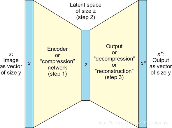 (1)编码器网络:取一个表示x(比如一张图像),然后用学过的编码器(通常是一个单层或者多层的神经网络)将维数从y减小到z。