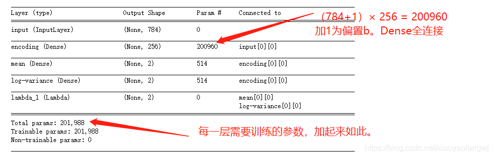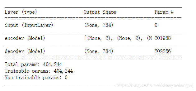 vae.summary()通过Keras.Model构造了一个编码器和解码器组合起来的整个神经网络。