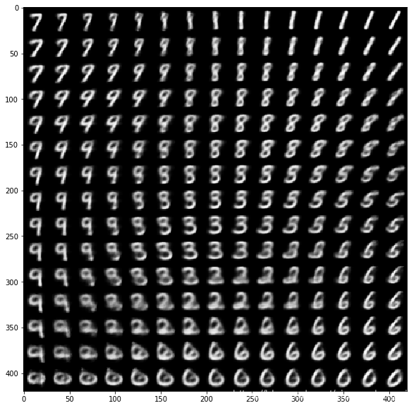 np.linspace, which enables us to move betweenminandmaxvalue instep_size.We then just generate a digit for each sample in the for loop and display!
