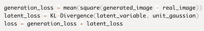 损失函数两部分组成: 自编码器本身自带的generation_loss生成loss、和VAE的Latent_loss。