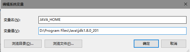 新建 变量名JAVA_HOME 变量值:安装jdk的路径我这里安装在d盘