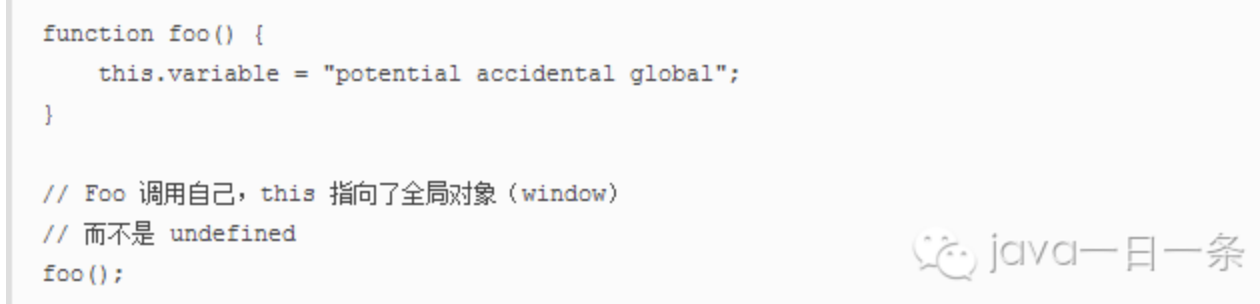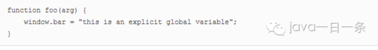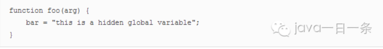函数 foo 内部忘记使用 var ,意外创建了一个全局变量。此例泄露了一个简单的字符串,无伤大雅,但是有更糟的情况。