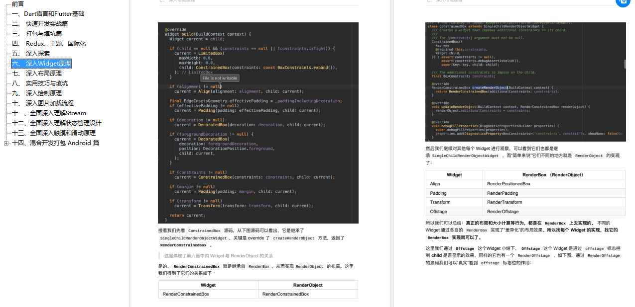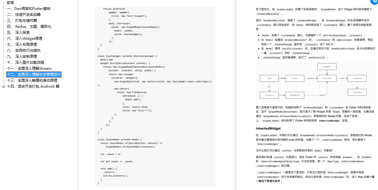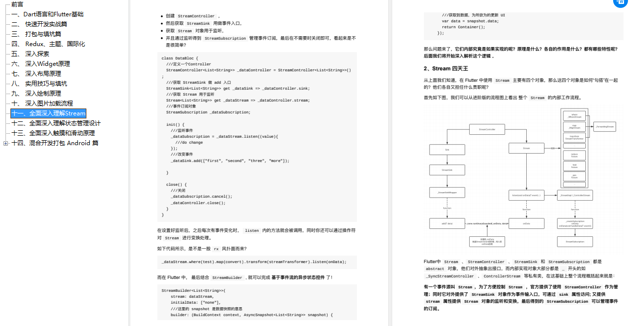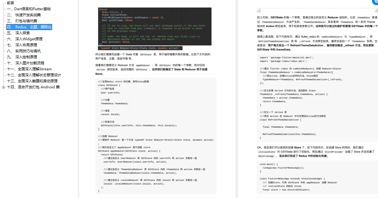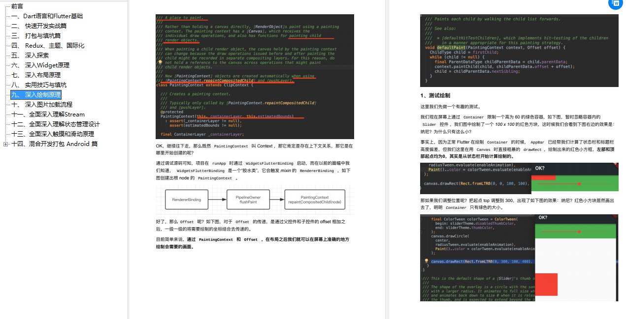 这里给大家分享一份《Flutter完整开发实战详解手册》,这份手册采用由浅入深的方式介绍 Flutter 技术原理,内容分为十四个章节。