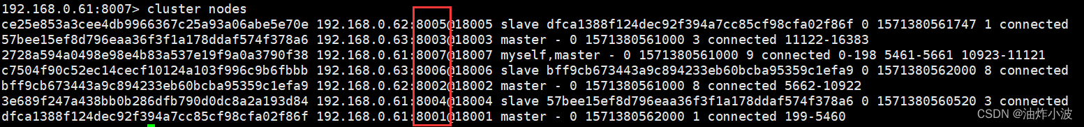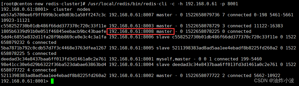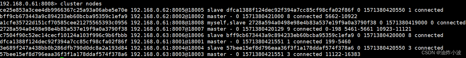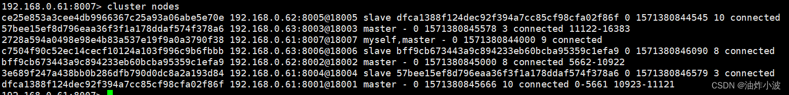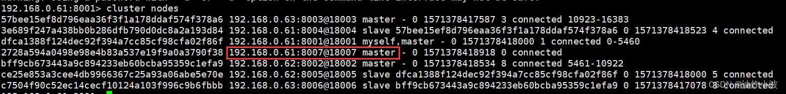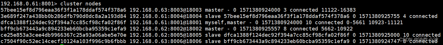 192.168.0.61:8001> cluster nodes如下所示: