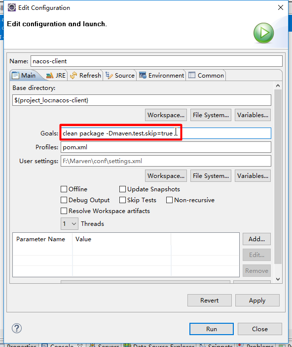 #spring.cloud.nacos.config.file-extension=yaml将工程打包成jar包