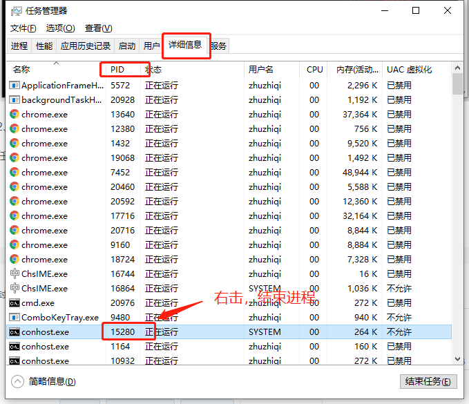 Spring boot:Web server failed to start. Port 8080 was already in use.出现这句关键词,就是端口号被占用了,废话少说上图1、查询被占用的端口号netstat -ano | findstr 端口号2、关闭被占用的端口号的进程任务管理器、详细信息 版权声明:本文为m0_60311922原创文章,遵循CC 4.0 BY-SA版权协议,转载请附上原文出处链接和本声明。原文链接:https://blog.csdn.net/m0_60311922/article/details/121605212