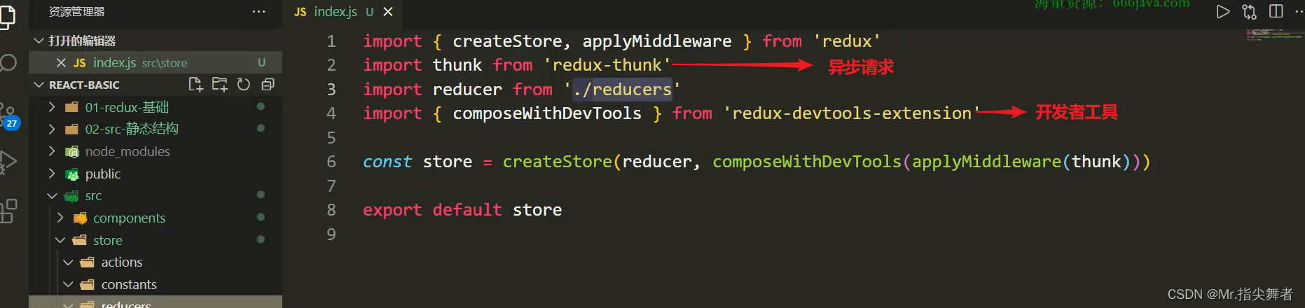 yarn add redux-thunk1.先创建store文件夹下创建index.js文件