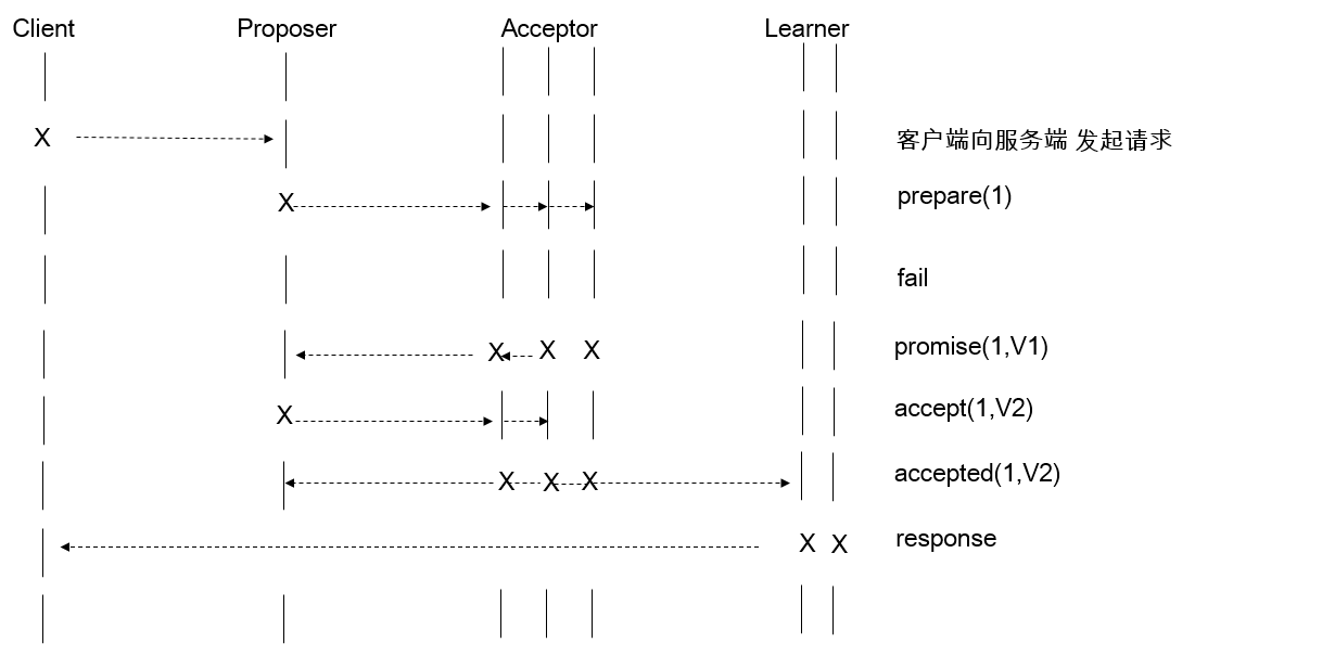 # Proposer不管Client是否有请求,都会向Acceptor集群发出一个prepare请求,竞选Leader,以后由这个Leader跟Acceptor提出提案;如果Leader挂掉了,再由其他Proposer来竞选新的Leader.