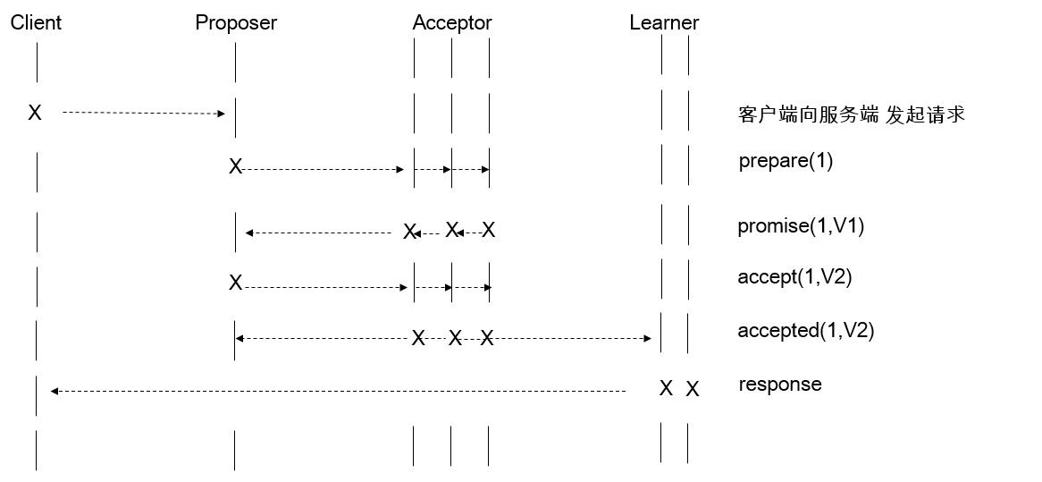 # Leader Proposer来确定第一次的提案编号和提案值,然后提交交给Acceptor集群