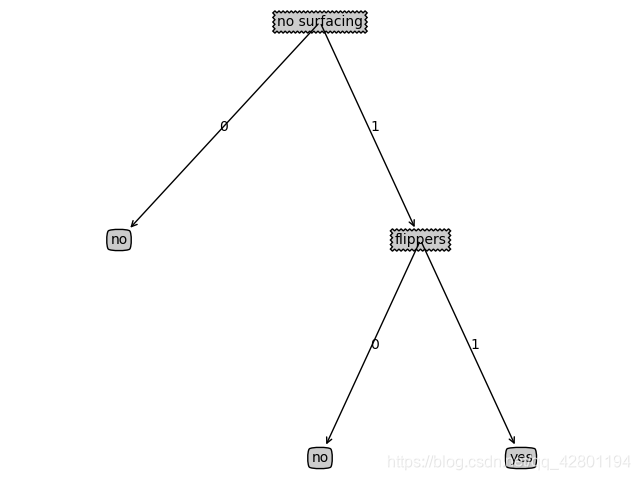 listOfTrees=[{'no surfacing':{0:'no',1:{'flippers':{0:'no',1:'yes'}}}},