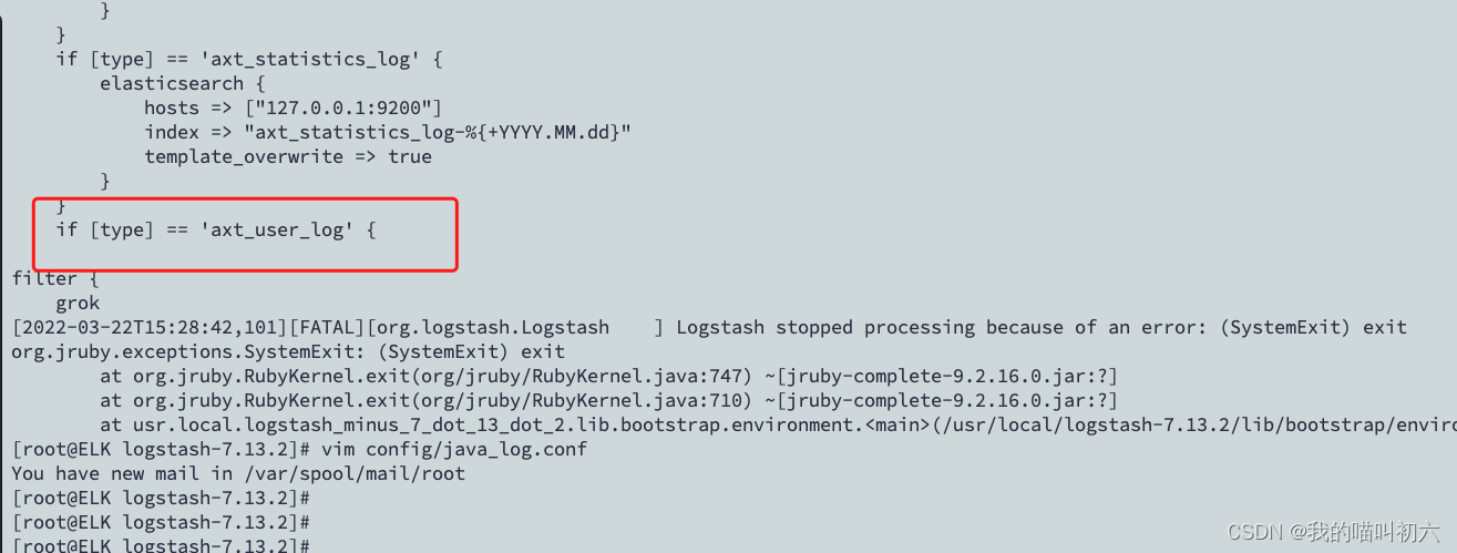 [root@ELK logstash-7.13.2]# ./bin/logstash -f config/java_log.conf -t我下面的错误又可能是我在编辑是粘贴错误造成的
