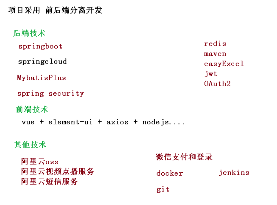 谷粒学院,是一个B2C模式的职业技能在线教育系统,分为前台用户系统和后台运营平台。
