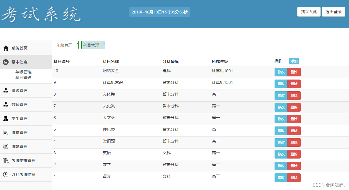 管理员同时也可以担任教师,管理员可以管理所有功能,教师只能管理部分考试相关的功能,考试信息由教师或者管理员发布,学生在前台可注册登录,注册时可选定班级信息,学生登录后只能查看自己所在班级的考试信息,当考试还未开始时学生不能进行考试,考试过期后系统会自动删除掉过期的考试,学生考完试后还可以复习已经考过的试题等等,功能比较详细。