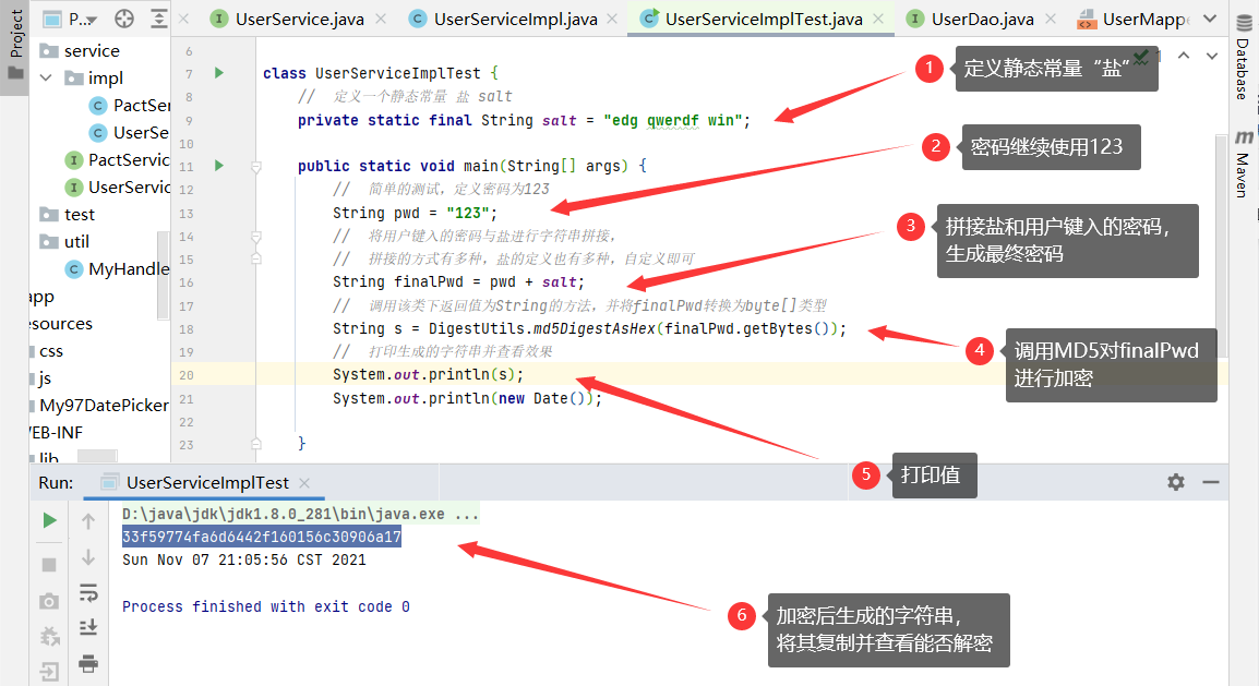 }这样一来,我们便完成了真正意义上的对后台数据的加密处理。将加盐后的字符串存入数据库即可实现对用户密码的保护。当然,盐需要管理员记录以便于企业内部使用,后续会出对盐加密后数据的处理方式以供用户登录。