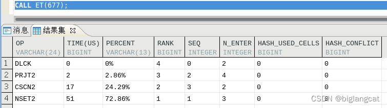 其中OP为对应的操作符,time为执行时间,PERCENT为时间占比,rank为时间排行,SEQ为对应执行计划中的第几行