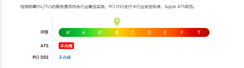 苹果从IOS13升级到IOS14后,发现APP无法下载,手机页面的图标一直是灰色,并且提示无法安装。网上查了各种帖子,有的说plist文件的下载地址要改成https协议的,有的说SSL协议要升级到TLS1.2的。而我们系统都符合要求,还是提示无法安装。最后经过各种努力,加上外部专家的请教,最终发现APP下载不了,是因为不符合苹果ATS的规范。估计IOS14对这块的控制加强了,导致升级后无法安装。如何检测系统服务域名是否符合ATS规范呢,通过这个网址检测即可:https://myssl.com/。如果不符合,它会提示以下信息:
