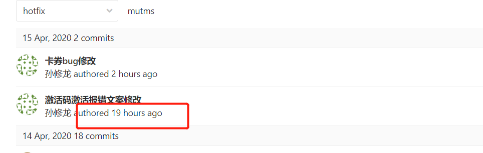④ 看到提交记录 是之前在 v20200416 分支的时间