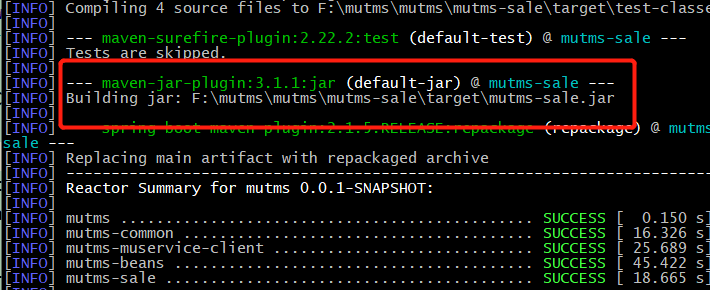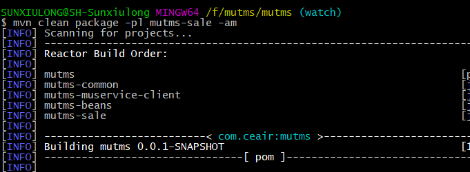 三、 mvn clean package -pl mutms-sale -am (maven命令打jar包)