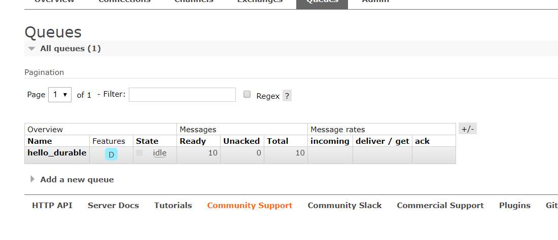 我们已经学会了如何确保即使消费者死了,任务也不会丢失。但是如果 RabbitMQ 服务器停止,我们的任务仍然会丢失。