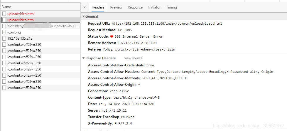 切换到network,发现上传视频的时候居然请求了两个接口,其中一个还是OPTION类型的请求,纳尼???